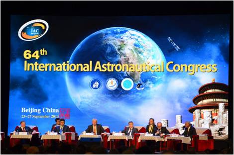 2013923日至27日,第64屆國際宇航大會在國家會議中心隆重召開。國家副主席李源潮代表習近平主席和中國政府致詞,全國政協副主席韓啟德出席,中國航天科技集團公司許達哲董事長主持開幕式,來自美國、歐洲、俄羅斯、日本、中國、印度的航天局長齊聚一堂,74個國家和地區的3600余名航天精英參會。